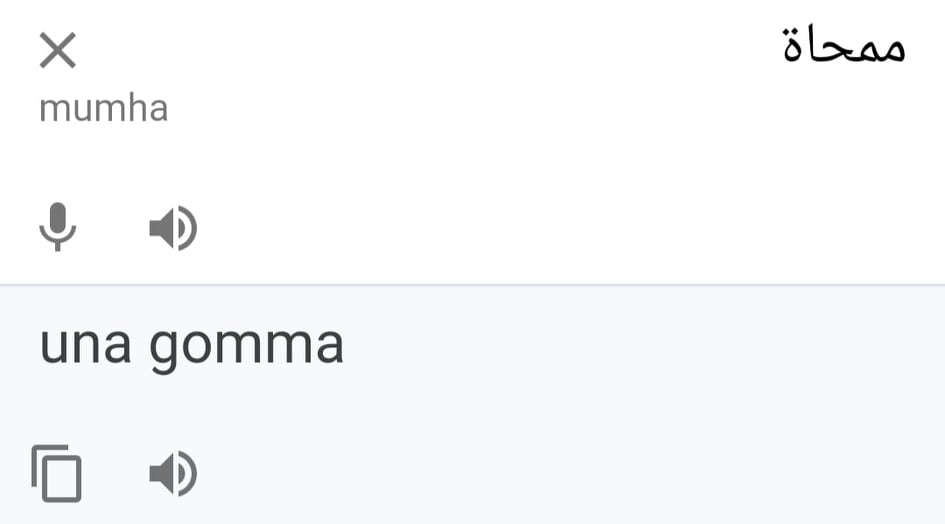 ولكن اكتشفت أن الكلمة أصلها الحقيقي والأدق مشتق من اللغة الإيطالية، وكلمة ممحاة باللغة الإيطالية تكتب una gomma
