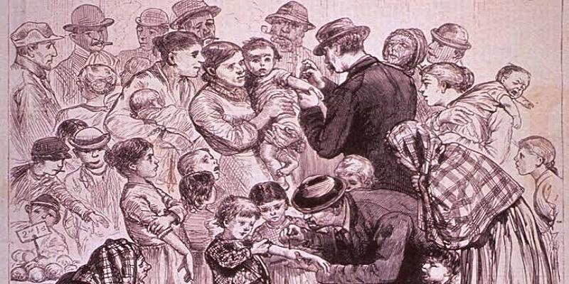 كانت اللقاحات أول مثال على الخدمة الطبية المجانية في المملكة المتحدة، وأصبح التطعيم المعيار الذهبي في الطب لأنه كان أكثر أمانًا، وفي عام 1840م مع إقرار قانون التطعيم الوطني، الذي تم تقديمه لتوفير لقاحات مجانية للفقراء، اصبحت تلك أول حالة من الخدمات الطبية المجانية والإجبارية في المملكة المتحدة، أصبح تطعيم الأطفال حديثي الولادة إلزاميًا هناك في عام 1853م، وفي عام 1855م، أقرت ولاية ماساتشوستس أول قانون في الولايات المتحدة يطالب بتطعيم أطفال المدارس.