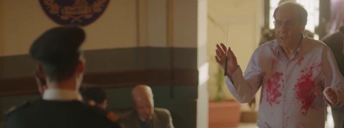 دخول عالي من ممثل قدير جدًا “أحمد فؤاد سليم” قبل تترات أول حلقة، شخص سبعيني “د. عاصم” شايل سكينة غرقانة هي وهدومه دم، يدخل قسم شرطة يسلم نفسه ويعترف إنه قتل مراته. مشهد قوي ومؤثر بس مش منطقي بالمرة، ماقصدش أن الدم شكله حبر، إنما لأن أي قسم العساكر بيقابلوا الناس من ع الباب تحت.. ده لو ماكنش من على أول الشارع.