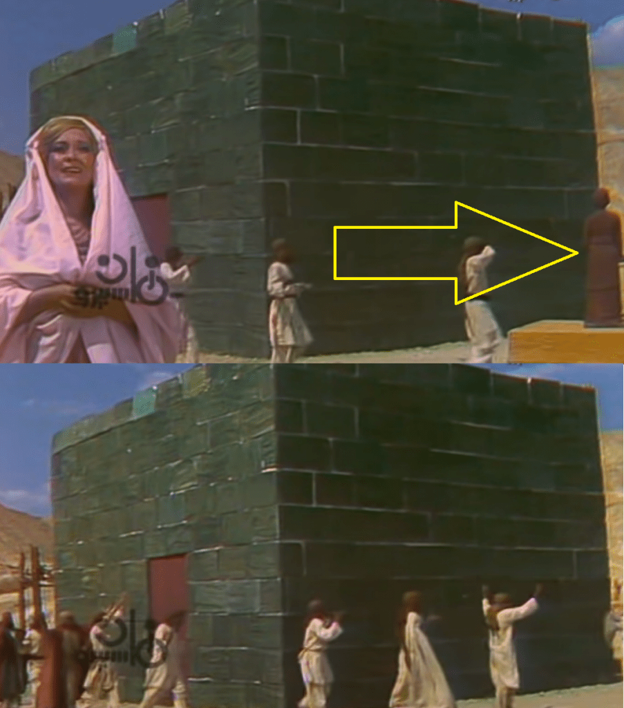 ومن أشنع الأخطاء الفنية في الحلقة 30 مشهد إبليس وهو يرى الدمار يعج في الأرض بالحروب والاقتتال بين البشر بناءًا على وساوس أبناءه للبشر، تم التعبير عن هذه الحروب بمشاهد من فيلم الرصاصة لا تزال في جيبي (مشهد العبور وتدمير خط بارليف).