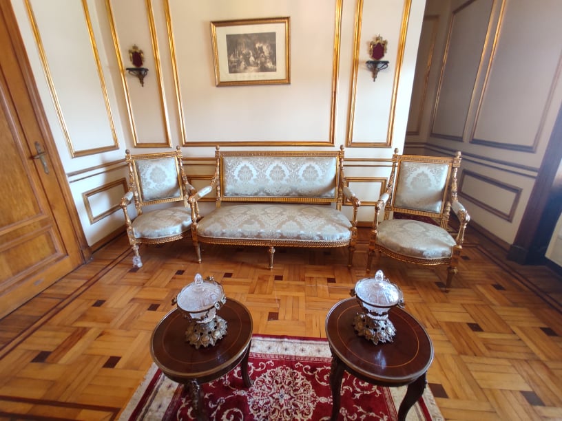 وكذلك يوجد الصالون الملكي لهما بانتيكات وآثار تركت كما هي بالمكان وأيضًا الشرفة الملكية الواسعة والتي صممت كي تطل على منظر الملعب مباشرة.