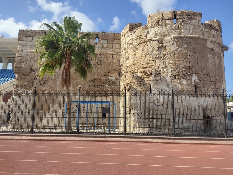 وبالملعب جزء كبير من سور الاسكندرية في العصر الإسلامي والذي مازال داخل الملعب حتى الآن يندمج مع السور الحديث في خط واحد.