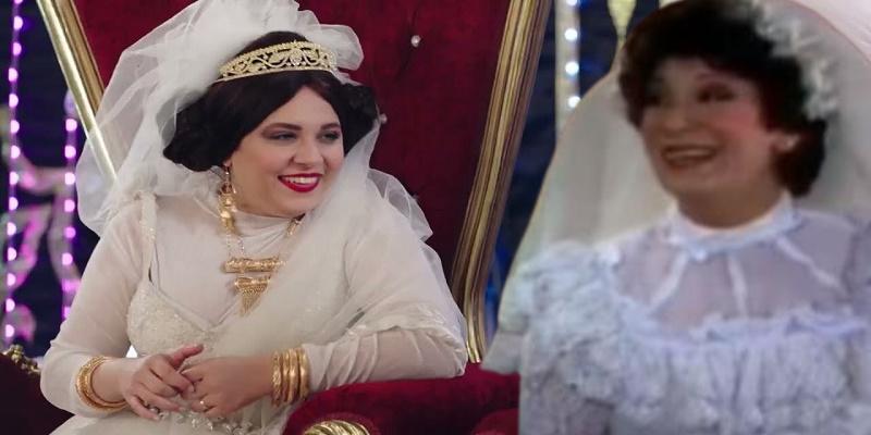 مربوحة في حلقة ليلة الدخلة وارتداءها “الأطقم” المتنوعة على حد قولها، ذكرتني بالجميلة سناء يونس مع الأستاذ فؤاد المهندس في مسرحية هالة حبيبتي في دور “مديرة دار الأيتام غير المتزوجة” والتي تحاول أن تغري المليونير فؤاد المهندس الذي حضر إلى دار الأيتام ليختار طفلة تقضي معه ليلة عيد ميلاده.