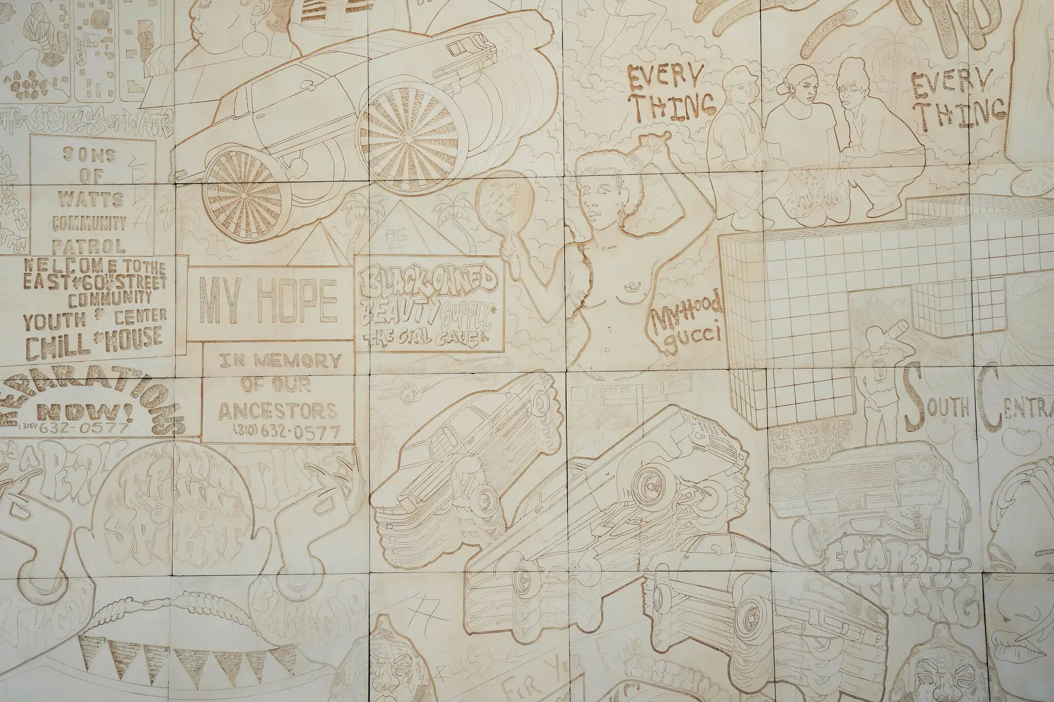 كما قال أبراهام توماس٬ أحد أمناء المتحف: “هذا المشروع الذي أعدته لورين هالزي والذي يبدو وكأنه سفينة فضاء أفروفوتورية مصرية قديمة قد هبط للتو هنا على سطح المتحف. تأثرت لورين بشدة بمجتمعها في جنوب وسط لوس أنجلوس. تتعامل مع القضايا الحاسمة حول النشاطية المدنية والتحسين لإنشاء هذا النصب التذكاري لمجتمعها والحاوية المعمارية لأرشيف المجتمع وتاريخه.”