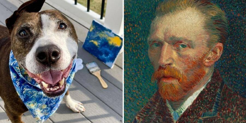 عندما تم إنقاذ فان جوخ من حلقة مصارعة الكلاب في ولاية كارولينا الشمالية، حيث تم استخدامه كطعم، كانت أذنه في حالة سيئة لدرجة أنها تطلبت البتر. لكن بدلًا من ترك ذلك يقتله، عقدت جاكلين جارتنر العزم على منح الكلب الحياة السعيدة التي يستحقها. لم تكتفي جارتنر بتسميته على اسم الرسام الشهير ذو الأذن الواحدة، بل وجدت أيضًا طريقة ذكية لمساعدة فان جوخ في إنشاء قطع فنية جميلة خاصة به.
