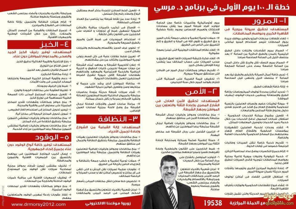 كان نظام الرئيس الأسبق محمد مرسي يتبنى مشروع النهضة ونواته برنامج الـ 100 يوم والذي كان من ضمن محاوره ما بات يُعْرَف حينها بـ تطهير الداخلية.