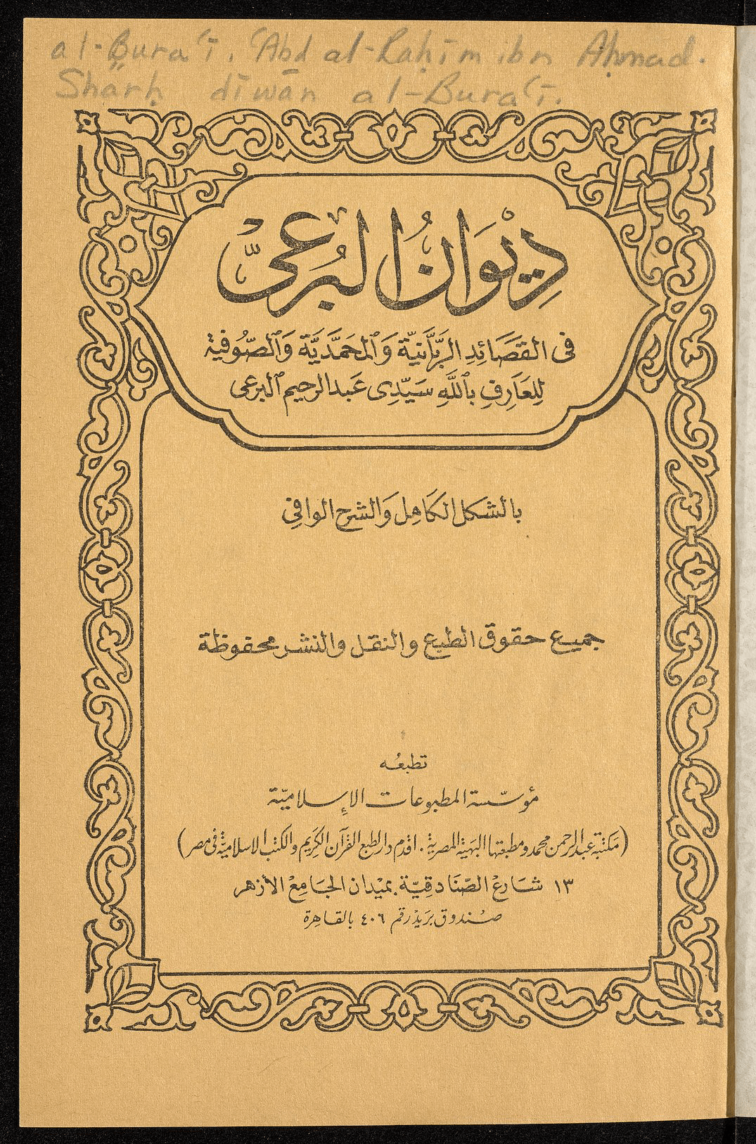 من هو عبدالرحيم البرعي صاحب البيت الصوفي ؟