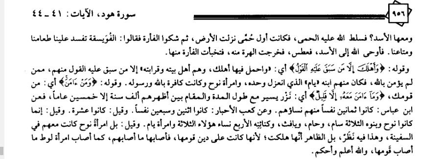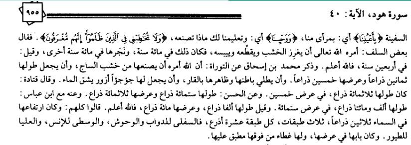 سفينة نوح حسب النص كان فيها جوز من أكل أنواع الحيوانات الموجودة النهارده على وجه الأرض، وده محتاج حجم خرافي خصوصا مع إضافة كميات الأكل والشرب اللازمة والحواجز المطلوبة بين الكائنات اللي بتتغذى على بعض، ده غير الكميات الخرافية من المخلفات، وأكيد مايصحش في محاولتنا لفهم المسألة دي نعتمد على تفسير ابن كثير للآية 40 – هود.