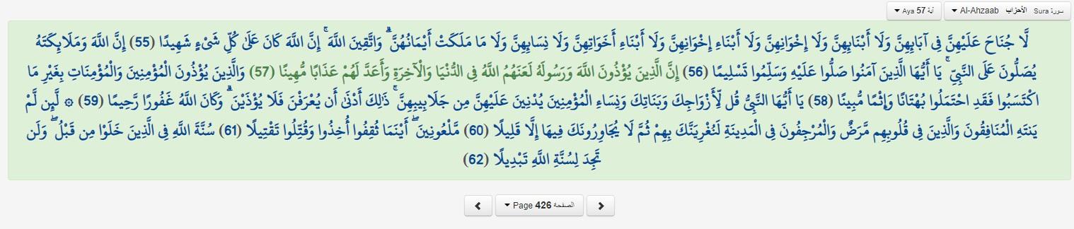 وفيه أحاديث تاني كتير، لكن مافيش أي نص قرآني بنفس الوضوح، فقط آية واحدة، 57 الأحزاب، واللي بتقول: (إِنَّ الَّذِينَ يُؤْذُونَ اللَّهَ وَرَسُولَهُ لَعَنَهُمُ اللَّهُ فِي الدُّنْيَا وَالْآخِرَةِ وَأَعَدَّ لَهُمْ عَذَابًا مُّهِينًا). وزي ما هو واضح مافيهاش أي تخصيص من أي نوع، إنما فيه بعض الآراء بتقول إن المؤذيين المقصودين هنا همه المصورين.