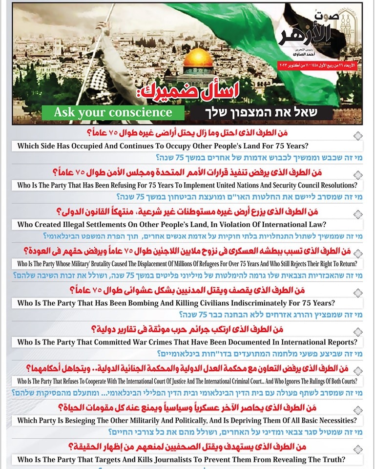 من بيان الأزهر بعد طوفان الأقصى