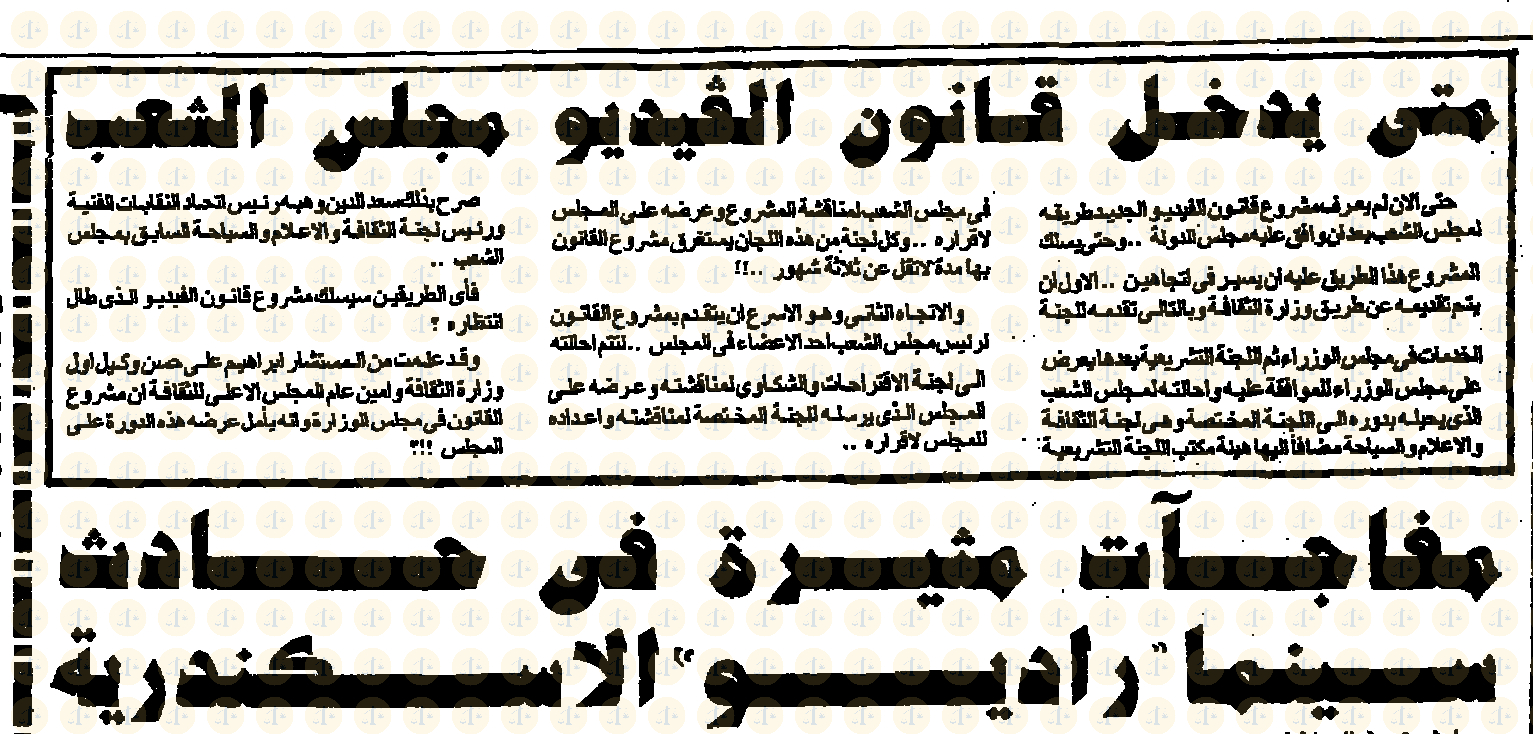 من أخبار قانون الفيديو وحادث سينما راديو الإسكندرية