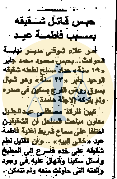 في 21 أكتوبر عام 1985 م انتهى التحقيق في إحدى أغرب جرائم القتل حيث أمر المستشار علاء شوقي مدير نيابة الحوادث بحبس محمود محمد جابر ويبلغ 19 سنة ويعمل حداد مسلح لطعنه شقيقه الوحيد جابر البالغ من العمر 23 سنة وهو شيال بسوق روض الفرج بسكين في صدره ولم يتركه إلا جثة هامدة.