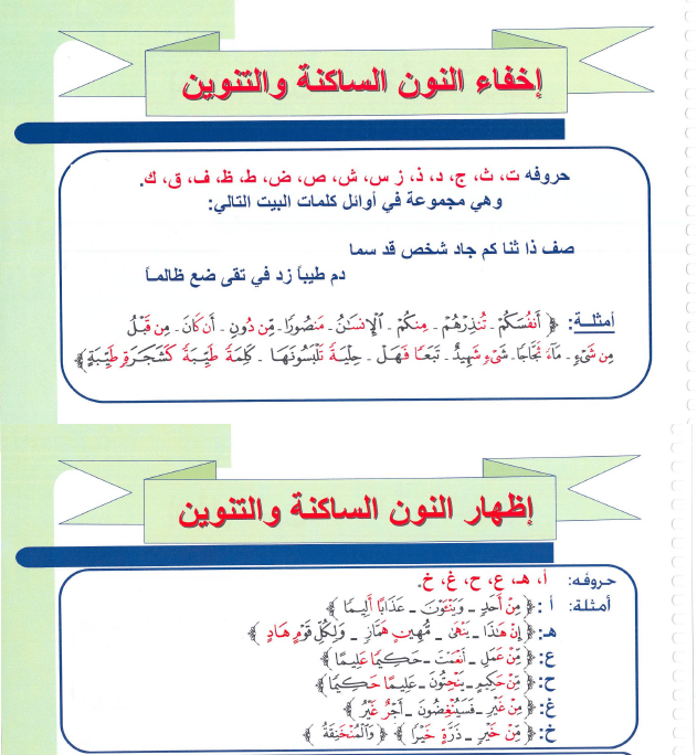 أَظْهِرْهُمـا مِـن قَبـــْلِ هَمْـزٍ هاءِ … عَيْــــــنٍ وحــاءٍ ثُمَّ غَيْــنٍ خَــاءِ.