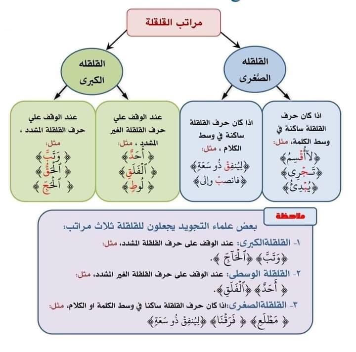 أما الحكم الآخر فهو طريقة نطق حرف القاف في (أَقْطَارِ) واسم الطريقة في علم التجويد هو (القلقة) ومعنى هو اضطراب الصوت عند النطق بحرف ساكن من الحروف الخمسة «ق، ط، ب، ج، د» حتى يسمع بنبرة قوية، وله 3 درجات؛ الاولى قلقة كبرى وهي أن يكون الحرف في آخر الكلمة مشددًا مثل «زَوْجٍ بَهِيجٍ»، ووسط وهو أن يكون الحرف موقوفًا وغير مشدد مثل (مِنْ وَرَائِهِمْ مُحِيطٌ) وقليل وهو أن يقع الحرف في المنتصف مثل (أَقْطَارِ).
