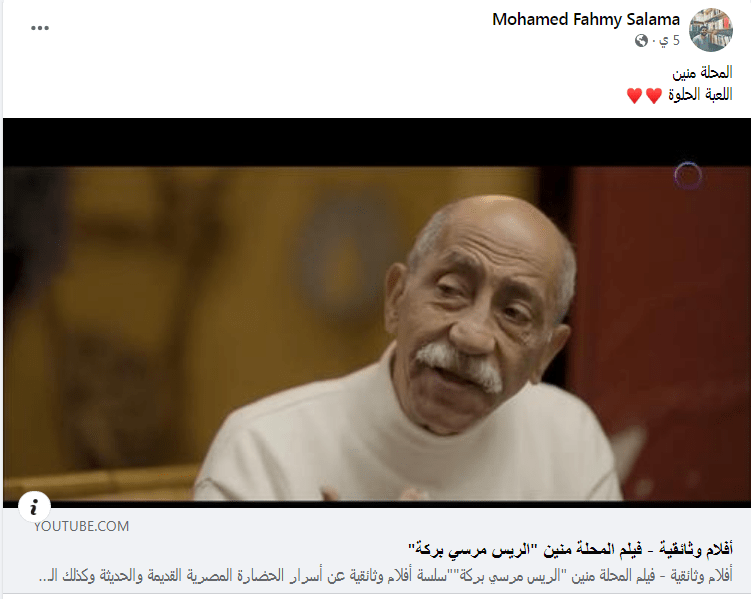 “أنتجته المتحدة ونفذته CMC” قناة DMC تعرض الفيلم الوثائقي الريس مرسي بركة