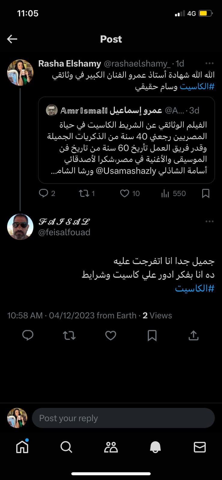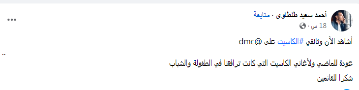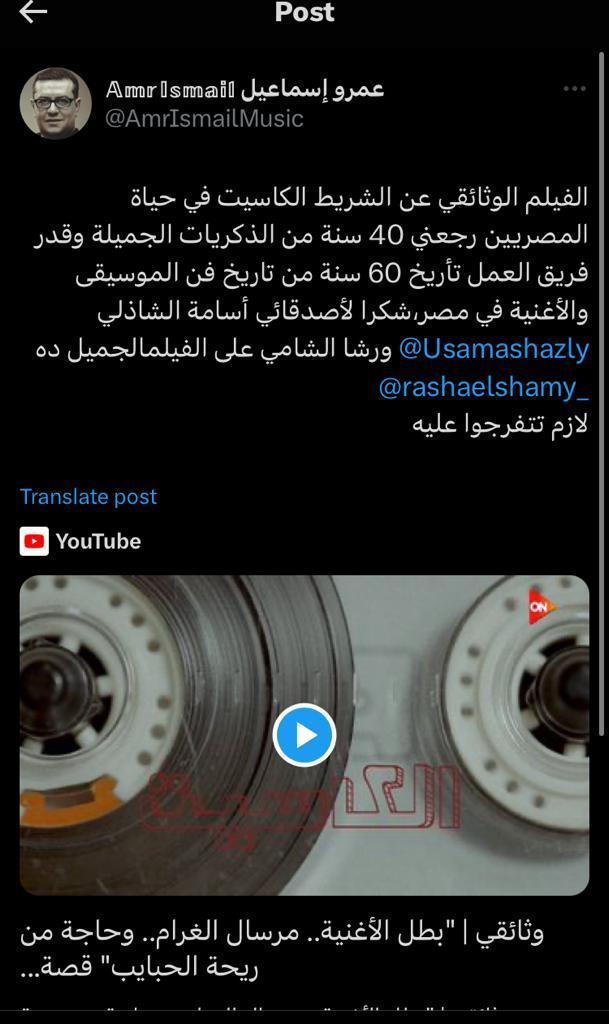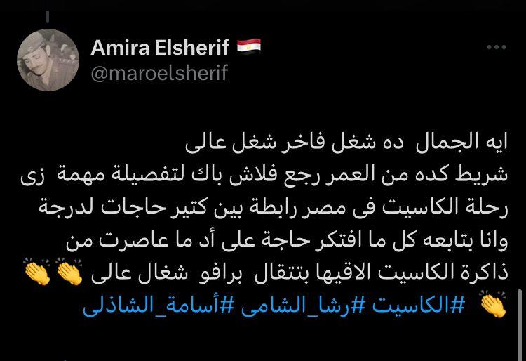 تفاعل مستخدمو مواقع التواصل الاجتماعي مع الفيلم الوثائقي الكاسيت والذي عرضته قناة ON E وأنتجته الشركة المتحدة للخدمات الإعلامية ونفذته شركة CMC برئاسة الإعلامية رشا الشامي والكاتب أسامة الشاذلي وتناول قصة ظهور الكاسيت ومراحل تطوره وازدهارده وصولاً لمرحلة الانطفاء ومحاولات الإحياء لعودته.