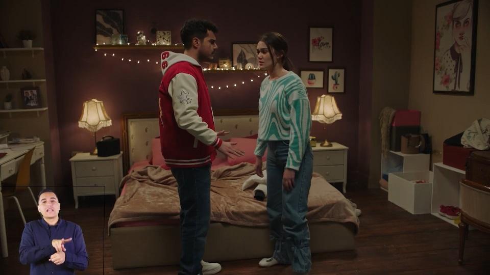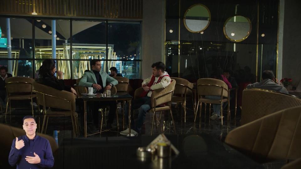 بعد الخناقة العبثية سالفة الذكر، يظهر الأخ/الحفيد “عمر” بنفس ذات الطقم في مقابلة مع سيدة الفيب الغامضة، اللي بتسمع جمل الحوار كإنها بتقرا من أوتو كيو.