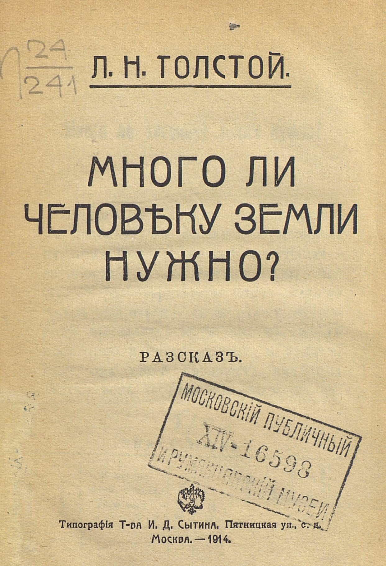 وقد كتبها ” تولستوي” تحت عنوان “ماذا يحتاج الإنسان من الأرض “
