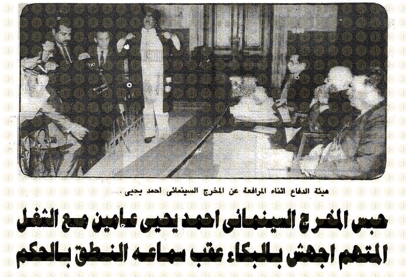 بدأت محاكمة المخرج أحمد يحيى في 16 فبراير سنة 1992 م وبعد أيام قررت محكمة جنايات القاهرة برئاسة المستشار جرجس كامل يعقوب وحضور أشرف عيسى وكيل النيابة، براءة المخرج من تهمة تعاطي المخدرات ومعاقبة صديقه رفعت محمد العدوي بالحبس سنة وغرامة 50 ألف جنيه، لكن كانت تهمة أخرى تلاحق المخرج وهي الحيازة.