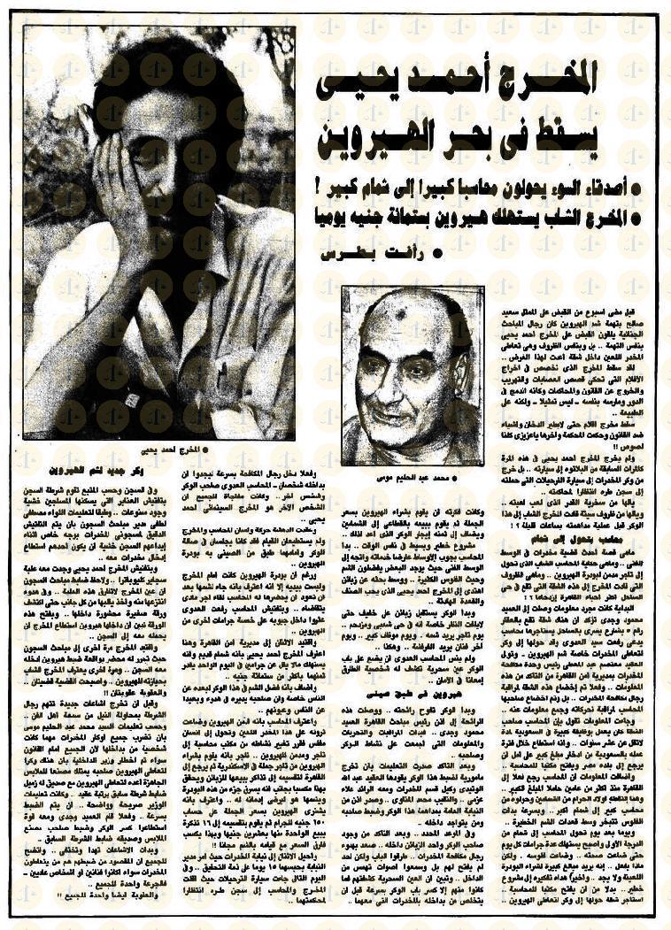 في 18 إبريل سنة 1992 قرر القاضي عبدالقادر إسماعيل صبري معاقبة المخرج أحمد يحيى بالحسب سنتين مع الشغل وغرامة 10 آلاف جنيه في تهمة حيازة تذكرة هيروين داخل سجن طرة كان قد تركها في علبة سجائر سوبر؛ النقيب أحمد سليمان ضابط مباحث سجن طرة قال أنه وردت معلومات تفيد إحراز المتهم بودرة الهيروين في غرفته بعنبر التأديب وتم تفتيشه وضبط تذكرة الهيروين في علبة السجائر السوبر، واتفق مع الشهادة مساعد الشرطة عبدالعزيز حسنين وعلى إثر ذلك تم حبسه سنتين.