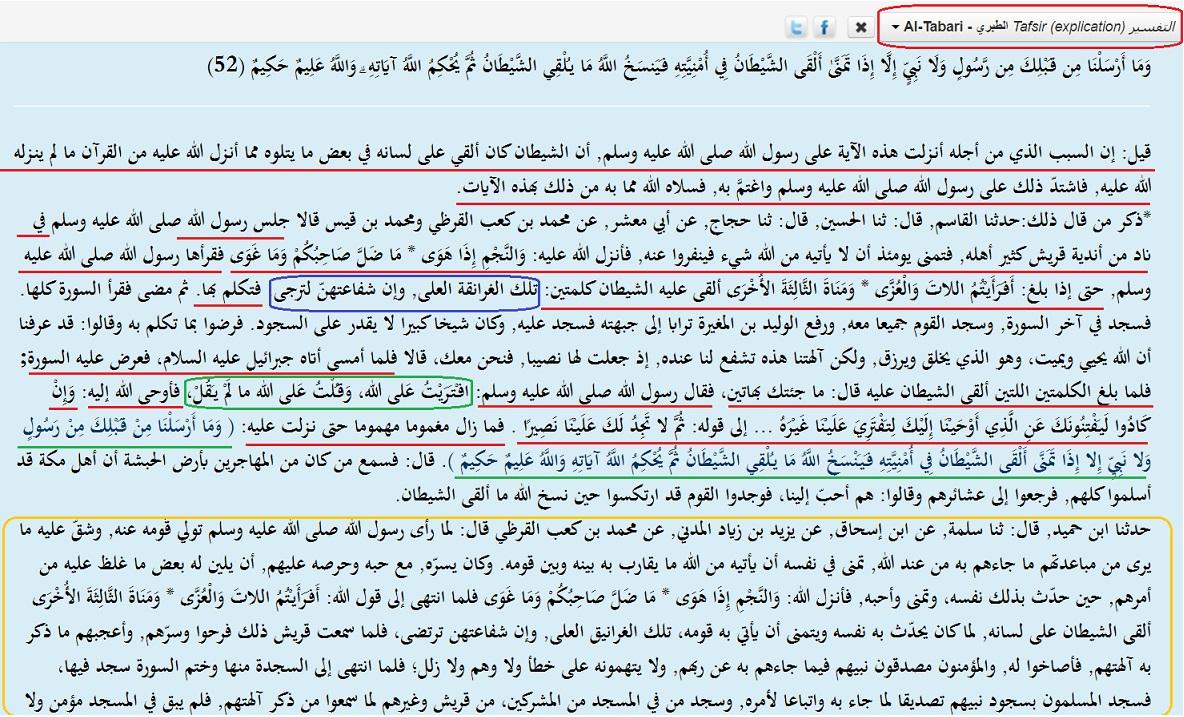 وإذا رجعنا للتفسير أو لأسباب النزول هنلاقي -في الحالتين- حكاية الغرانيق بتظهر، ويتقال إنها هي المقصودة بالآية دي.
