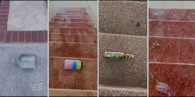 انتشرت في الفترة الأخيرة مقاطع فيديو لتكسير الزجاج الممتلئ بالسوائل والرمال أثناء التدحرج على السلالم…